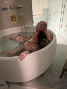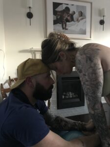 It was the night after my 38 week appointment and group class…all day long I was feeling a little off and slightly cramping but feeling that way for weeks kind of makes you feel like you’re always just gaslighting yourself into it being labor starting so it was pretty easy to ignore. Chris and I went to bed like any other night. I kind of felt myself in and out of sleep…the kind of sleep where you almost know you’re still awake but half in the other world when I felt and quite literally heard a POP. I started feeling some water trickle out of me and just thought I was probably peeing myself a little bit, I was so tired and so close to the end I didn’t even care anymore about getting up to see I just wanted to sleep. But a few minutes later I felt more water, and then more and I realized MY WATER BROKE. I jolted up in and bed and woke up Chris immediately telling him I think my water broke and to grab me a towel to which he helped me up to the toilet where I sat down and in fact leaked more and more water which seemingly did not stop for the entire duration of my labor! At this point it was 1:30 AM and even though my heart was racing with nerves and excitement I knew it could be hours if not all day before the baby decides to come so after calling Maura to let her know, and checking in with my doula Lindsay (Fertile Roots) Chris and I went to lay back down.